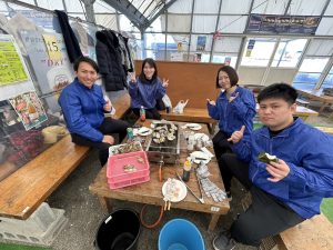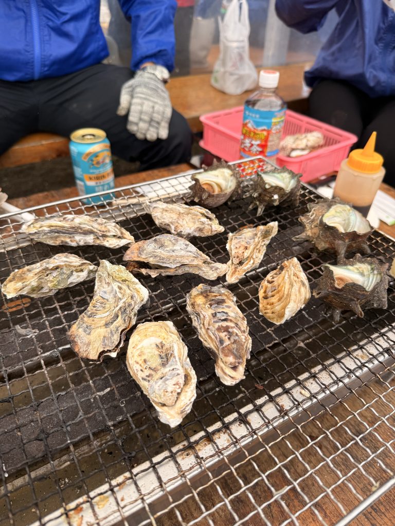 そしてダイビングの後は、みんなで牡蠣小屋へ。