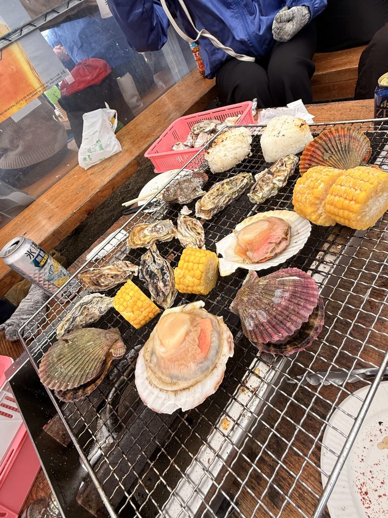 新鮮な牡蠣はもちろん、帆立やイカもいただいて、海のあとの海のごちそう。